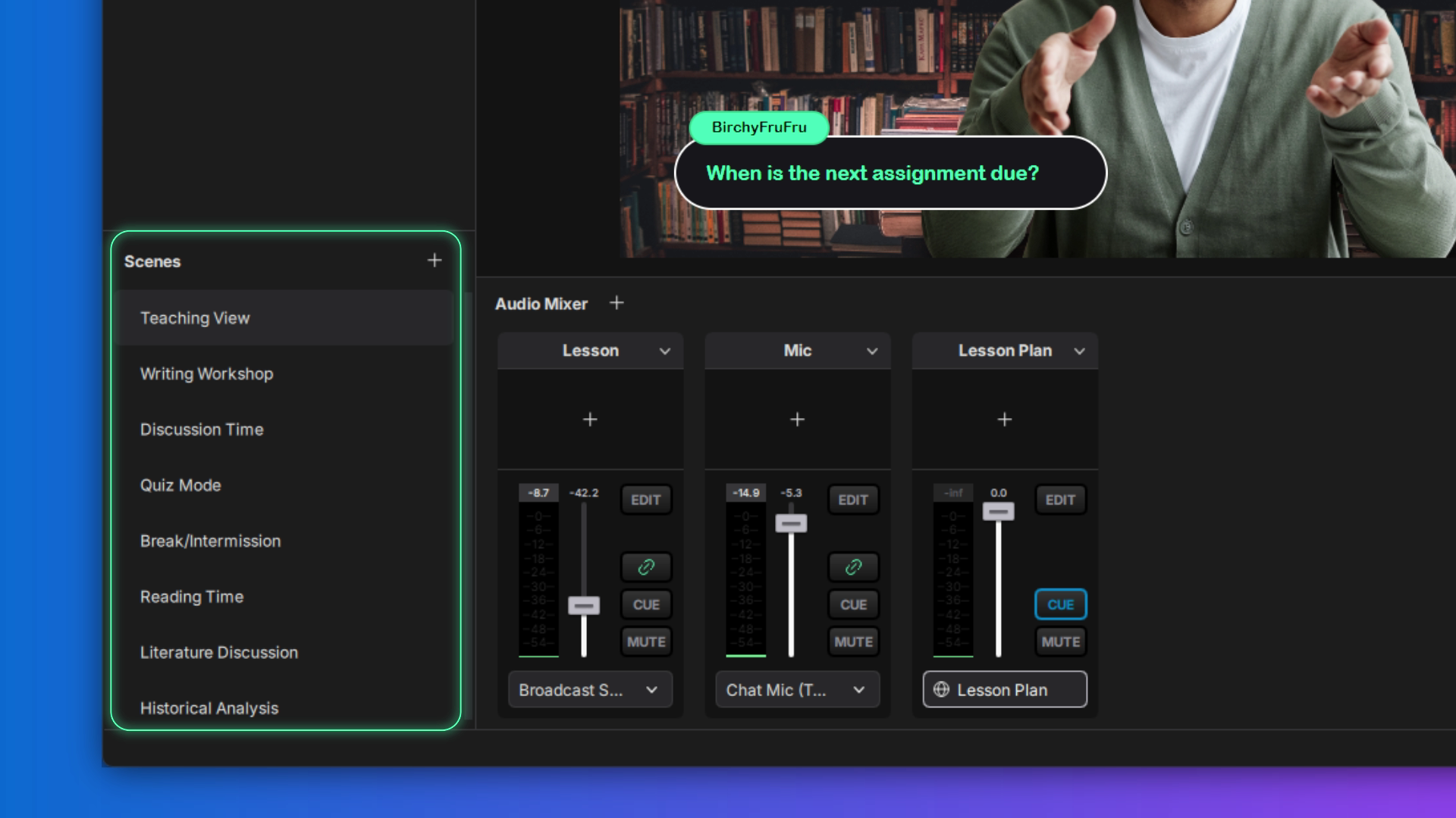 Professional Audio Control: A robust audio mixer with global tracks that let you mute, cue, and adjust volume across different scenes. This is crucial for anyone serious about audio quality.