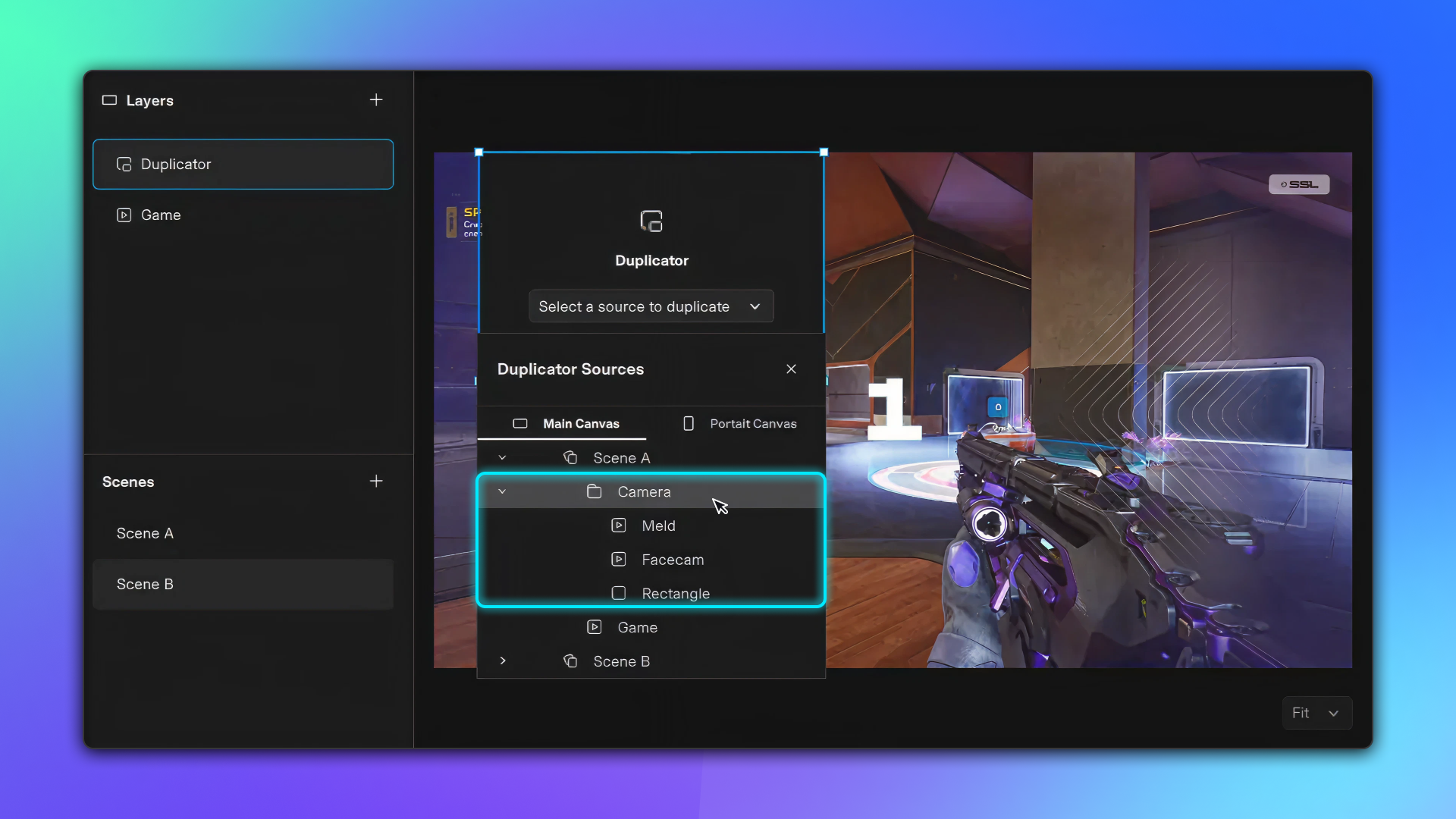 In this release we're introducing Layer Grouping in Meld Studio. It's exactly what it sounds like: a simple way to organize your streaming software layers so your scenes stay clean, readable, and easy to manage. Meld puts your workflow front and center with Scenes and Layers on the left, your canvas in the middle and the Inspector Panel on the right. Layer Grouping levels up that workflow by keeping the left side from turning into a scroll-fest.
