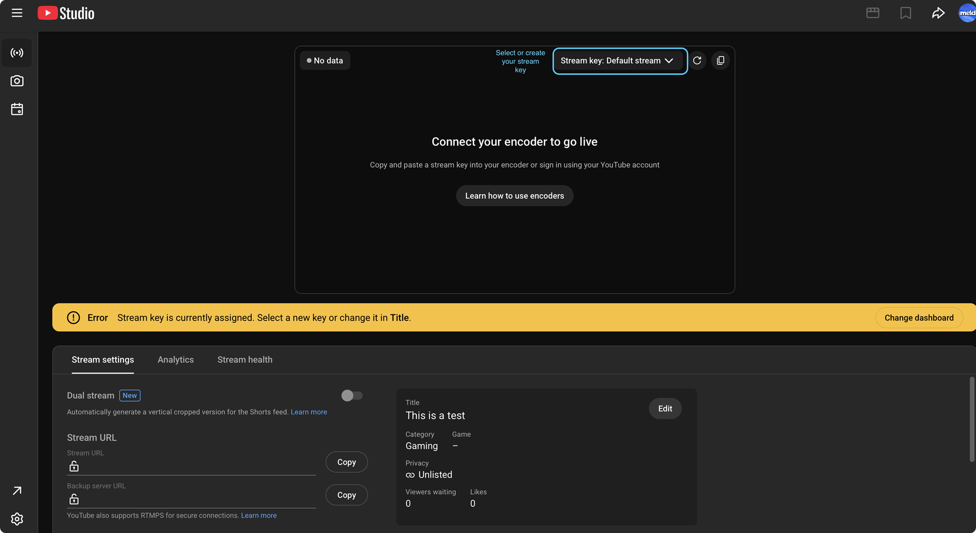 Remember to always treat your stream key like a password and do not share it with anyone you wouldn't want to go live on your channel.