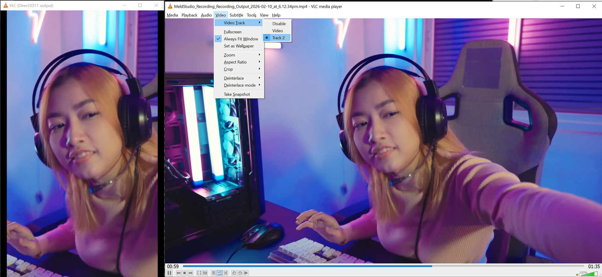 And finally if you stop the recording and open the output file in VLC Media Player you should see that it has multiple video tracks.