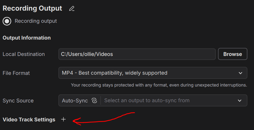 3. Add an extra video track to the recording output.