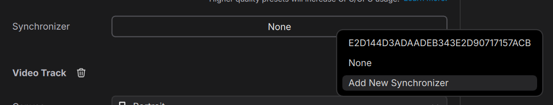 If two video tracks use the same "Synchronizer" then all video keyframes will be synchronized for those tracks. The synchronizer is a requirement for multi-video track recording and for Twitch enhanced broadcast and probably deserves its own blog post but the short explanation is when muxing multiple video tracks into a single container each track's keyframes (IDR frames) need to be aligned so the container can be seeked and split cleanly. Without this you can get audio desync or corruption when scrubbing in a player.